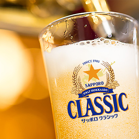 当工場で醸造された北海道限定「サッポロクラシック」をはじめ、注ぎたての生ビールは鮮度抜群。軽やかでなめらかな泡とコクのある旨み、すっきりしたのど越しはここでしか味わえない特別な一杯です。