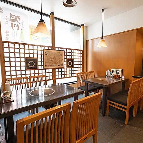 一階はカウンター席の他に小上がり席、テーブル席がございます。小上がり席はゆったりと寛げ、小さなお子さま連れのお客様にもオススメです。和の趣のある店内でお食事をお楽しみください。