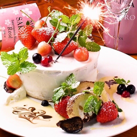 フルーツたっぷりのデザートも色鮮やかで大人気♪事前予約でデザートプレートやホールケーキのご用意が可能です。大切な方の誕生日・記念日のお祝いにいかがでしょうか。ご希望はお気軽にお申し付けください♪