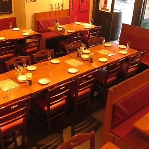 団体様利用OK!20~40名様で承ります。20名様以上のお集まりには断然、貸切がおすすめです。ご希望に合わせてレイアウトは自由自在。様々なシーンで使い勝手抜群です。立食の場合はテーブルの高さが変わるので、料理も食べやすいと大好評!少しレトロなヨーロッパ調の空間で、癒しのひとときをどうぞ。
