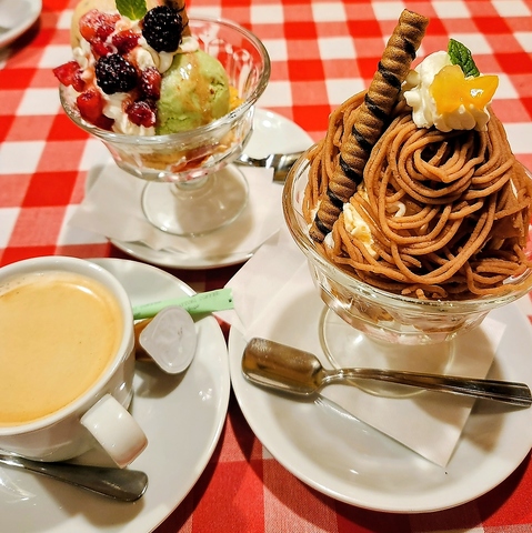 絶対に欠かせないのは食後のデザート★ケーキ各種590円!ボリュームたっぷりのモンブランパフェ750円♪♪
