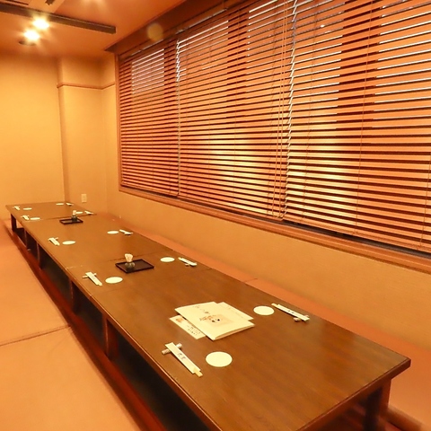 最大16名様までご利用可能な半個室の掘り炬燵席は、落ち着いた雰囲気の中でゆったりとお食事を楽しめるスペースです。周囲の目を気にせず、プライベート感を大切にしたいご宴会や接待に最適です。温かな灯りに包まれた空間で、心地よいひとときをお過ごしください。