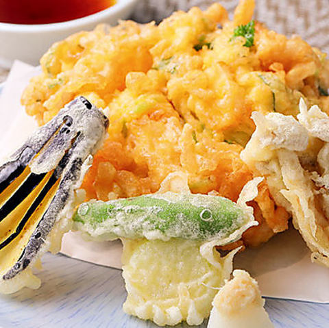 大ぶりのエビはプリプリして食感がよい。サクっと揚がったかき揚は食べごたえも十分だ。