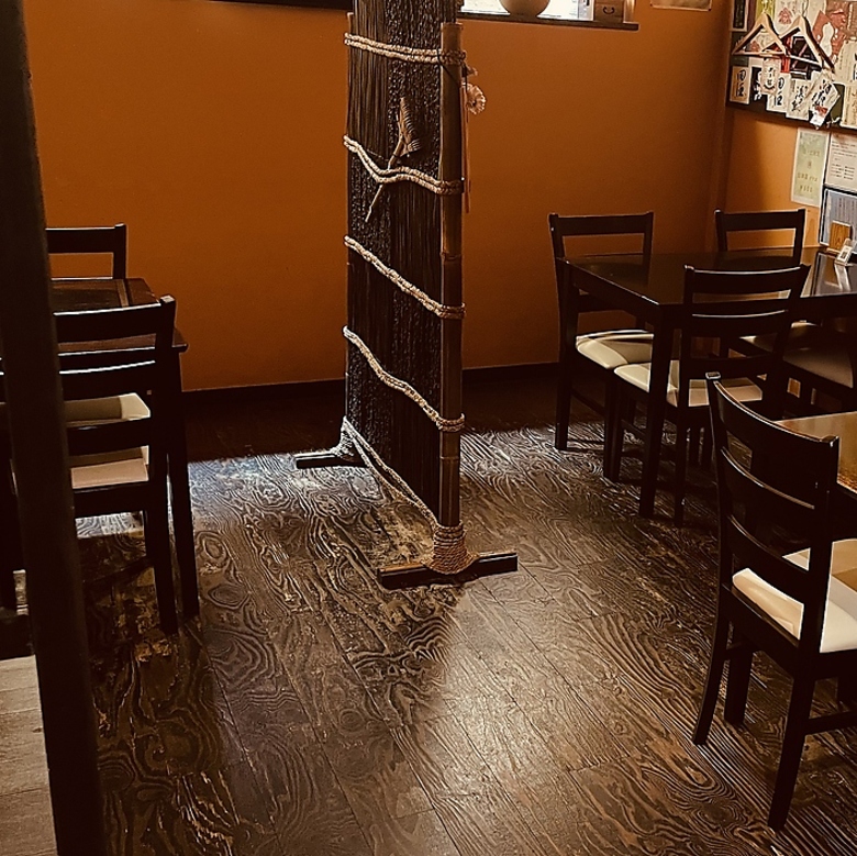 1Fフロアーはゆったり広めに配置されたテーブル家族が集まったときや記念日など落ち着いたひと時をお過ごしいただけます。