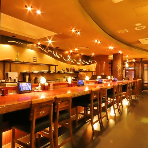 あたたかみのあるカウンター席は、おひとり様でもふらっと気軽に立ち寄れる気楽さが魅力。隣同士でゆったり過ごせるので、しっとり語らいたい夜にもぴったりです。