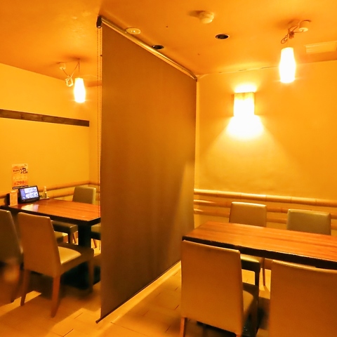 落ち着いた店内空間にあるテーブル席は個室ではなくとも、ゆったりとお食事を楽しむことが可能です。宴会コースや美味しい逸品料理、種類豊富なドリンクをご用意してお待ちしております。