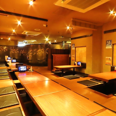 大人数での宴会に最適な居酒屋として、広々としたテーブル席をご用意。飲み放題付きコースも充実しており、個室の利用も可能です。設備や環境が整っているので、幹事様が安心してご予約いただけます。