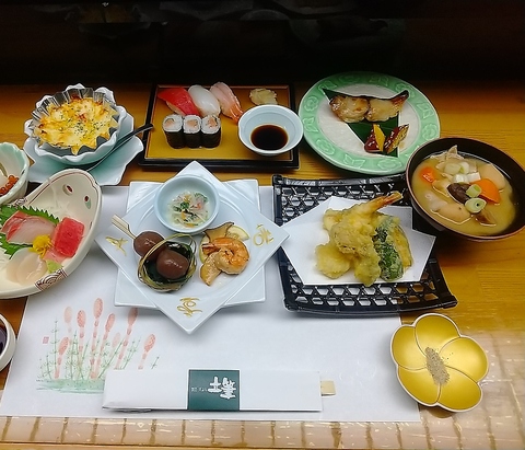 季節限定のメニューです!◆前菜3点 ◆サラダ ◆メイン ◆お刺身盛り合わせ ◆焼き物 ◆天ぷら盛り合わせ ◆さざえのチーズ焼き ◆ご飯もの 6000円で飲み放題付きになります♪さらに、女性のお客様はデザートサービスがございます♪