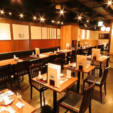 2名~4名様用テーブル席。落ち着いた店内空間にあるテーブル席は個室ではなくとも、ゆったりとお食事を楽しむことが可能です。飲み放題付コースや美味しい逸品料理、種類豊富なドリンクをご用意してお待ちしております。