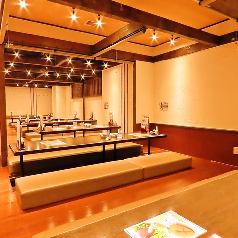 大人数での宴会に最適な居酒屋として、広々としたテーブル席をご用意。飲み放題付きコースも充実しており、個室の利用も可能です。設備や環境が整っているので、幹事様が安心してご予約いただけます。