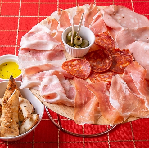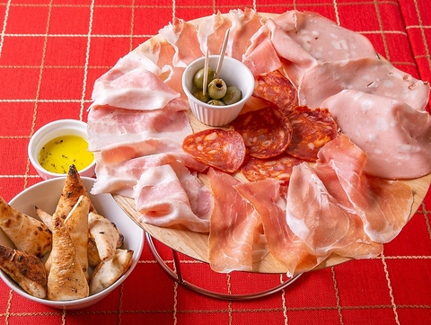 名物の生ハムとサラミの盛り合わせ!フォカッチャ付き