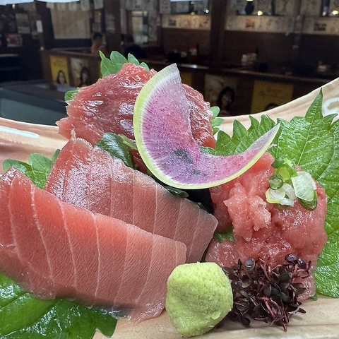 鮮度の良い養殖生本マグロを使用した。中トロ、赤身、中落ちが楽しめ、良質な味わいが堪能できます。
