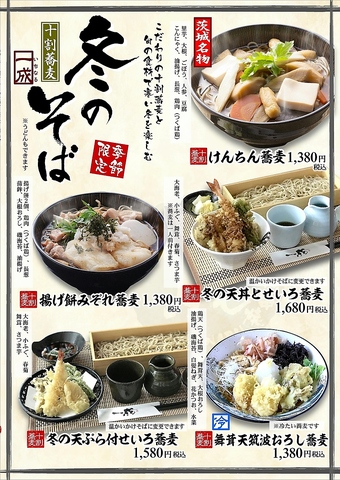 季節限定でしか食べられない十割蕎麦。季節の食材を使用した蕎麦メニュ―です!