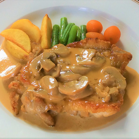 香ばしく焼き上げたチキンに当店自慢のクリームソースを合わせた、濃厚さの中にやさしさを感じられる一品となっております◎クリームのコクを和風の風味がまろやかに包み込み、重くなりすぎず鶏肉の旨みをしっかりと引き立てています。ライス、またはパンからお好きな方をお選びください。