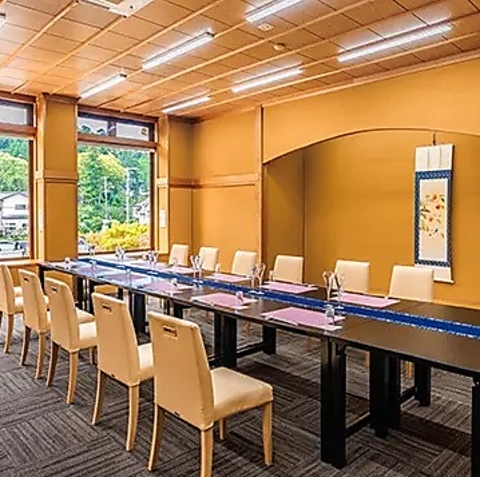 全室からパノラマビューの青海神社・加茂山の四季を望むことができます。パーティー、ご法要、お祝い、歓送迎会等々、さまざまなご利用に対応いたします。人数に合わせて、お部屋をご用意いたします。