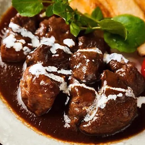 新潟県産のブランド牛、あがの姫牛を贅沢に使用。時間をかけてじっくり煮込み、トロけるような柔らかさと濃厚な旨味を引き出しました。手間暇かけた特製デミグラスソースが肉の風味を包み込む、心温まる逸品です。