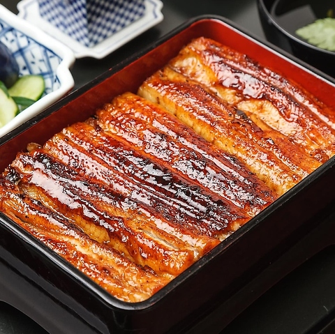 活うなぎを仕入れ、毎朝お店で捌いています。炭火で白焼きしたあと、蒸し器でふわふわの柔らかさに仕上げます。うなぎの旨みを活かしたタレを5度漬けし、備長炭でじっくりと香ばしく焼き上げます。(例)特上うな重 一尾×一尾半 肝吸い付 5940円(税込)