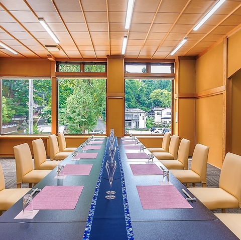 新緑や紅葉の美しい季節に、二階席から風雅な景色を眺めながら、美味なる料理に舌鼓を打つ贅沢な時間を。