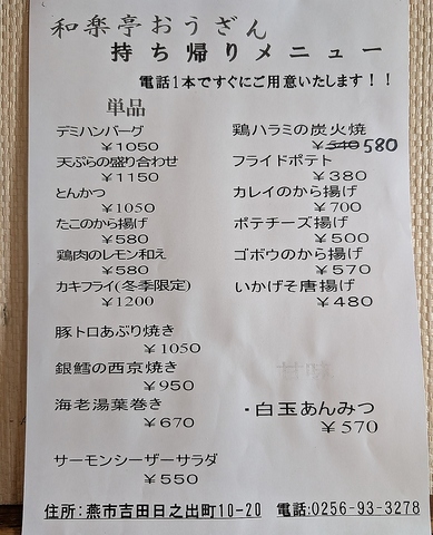 和楽亭おうざん テイクアウト