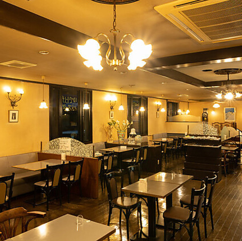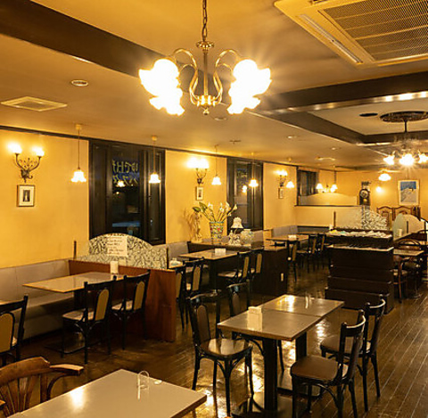 優しく灯るアンティーク調の照明が、落ち着いた大人の雰囲気を演出します。50年の歴史を感じさせるクラシックなインテリアに囲まれ、日常の喧騒を忘れてゆったりと過ごせるのが魅力◎木の温もりと柔らかな光が調和する空間は、大切な方との語らいや、自分を労わる上質なリフレッシュタイムにぴったりです♪
