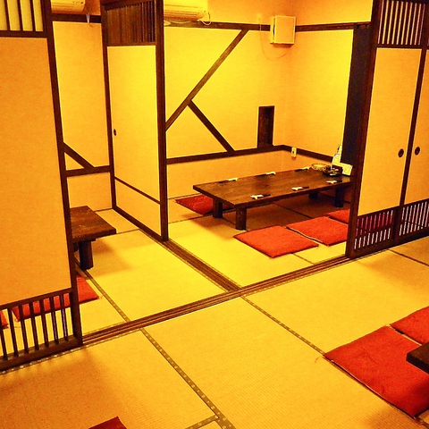 襖で仕切ると、少人数での宴会にぴったりの個室に。気のおけない仲間と一緒にワイワイ盛り上がろう。