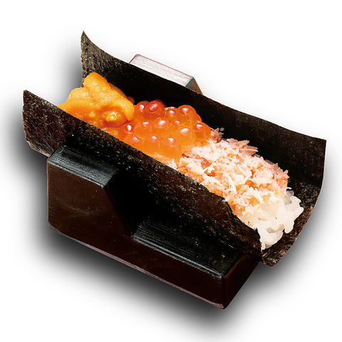 生うに・かに・本まぐろ中とろ・いくら・数の子・ほたて・まぐろ・真鯛・甘えび・活〆煮穴子・ぶり・たこ・いか・こはだ・ネギとろ・玉子
