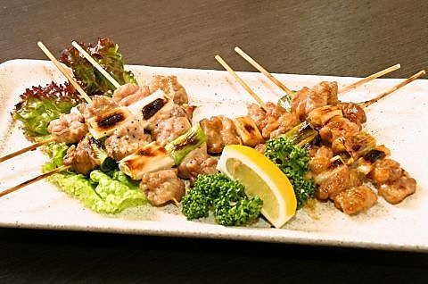 いろいろな味が楽しめる串焼盛り合わせ!お酒を注文したらまずは一品目にいかがですか?