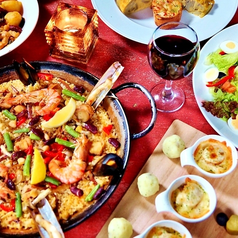 素材の旨みたっぷりの『大鍋パエリア』と自慢のサングリア他、50種のドリンクが楽しめる超定番コース★