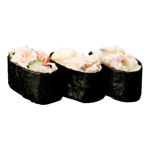 まぐろの王様「本まぐろ」の異なる味わいを一度に楽しめる大人気商品。赤身、中とろ、大とろ、炙りとろに、うにを組み合わせた軍艦など、なんとも豪華な一皿です。2025年3月には、2万3千人のフードアナリストによる日本初の食品・食材評価制度「ジャパン・フード・セレクション」で最高ランクのグランプリを獲得しました!