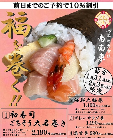 1/31(土)~2/3(火)限定★2026年恵方巻ご予約承り中!前日までのご予約で10%割引です(^^)/