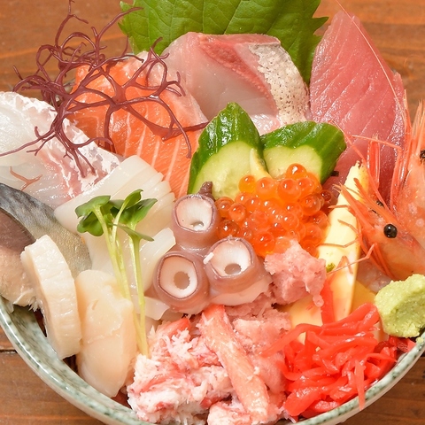 港町に負けない自慢の海鮮丼。丼を覆うネタは12種以上。