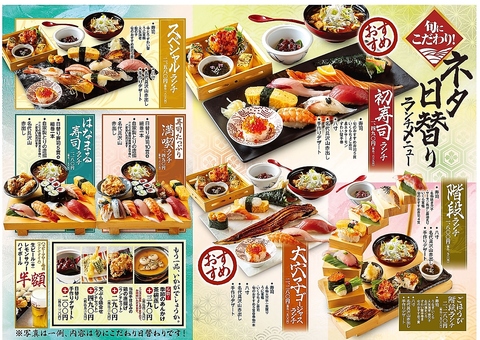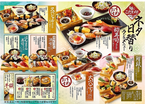 有名番組でも紹介された一番人気「初寿司ランチ」や10食限定の通常の2倍デカネタ「大切り寿司ランチ」など多種の寿司ランチをご用意いたしました!お得に寿司を堪能してください!