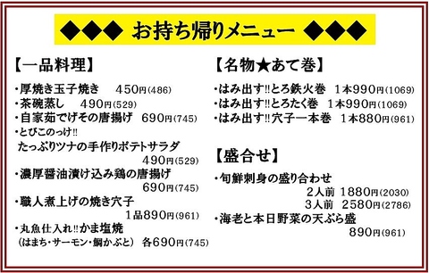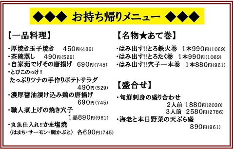 - お持ち帰りの際の、盛り合わせ赤出汁は容器と替えさせていただきます。
