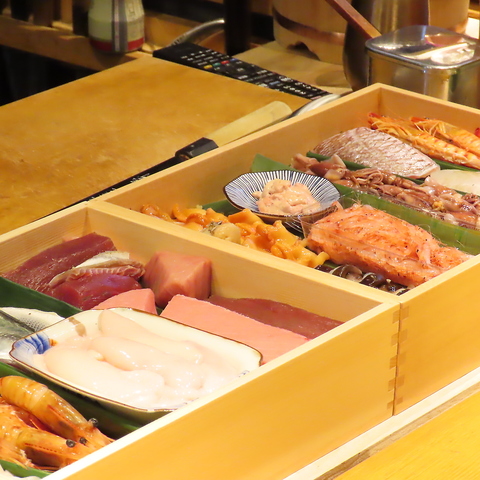 お造りや天婦羅など、こだわりの食材をふんだんに使用したお料理をご提供いたします。予算やお好みに応じてご用意いたしますので、海の幸が好きな方には、その時期の最高の魚介を中心にしたお造りを、野菜が好みの方には季節の野菜を使用した天婦羅をご用意するなど、お客様に合わせたお食事をお楽しみいただけます。