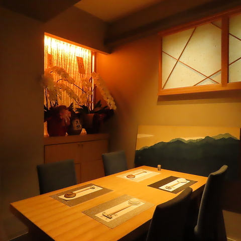 当店は、9席のカウンターと個室が1つという小さなお店だからこそ、きめ細やかなサービスを心掛けています。限られた席数のため、アットホームな雰囲気が漂い、居心地の良さを感じていただける空間です。また、雰囲気のあるカウンター席では、目の前で職人が手際よく料理を仕上げる様子を間近でお楽しみいただけます。