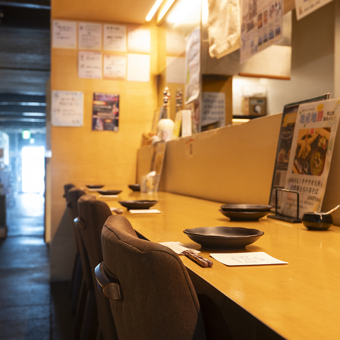 大通りにふいに現れる、洗練された佇まい。一見して居酒屋とは思えない落ち着いた外観は、思わず中をのぞきたくなるような特別感をまとっています。ガラス張りの入口の先に広がるのは、モダンで落ち着いた和みの空間◎心地よいジャズの音色に包まれながら、喧騒を忘れてゆったりと流れる時間をお過ごしください。