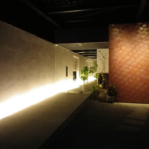 玄関までのアプローチには、趣ある大谷石を敷き詰め、やわらかな月明かりを思わせる照明が足元を優しく照らします。その先に広がるのは、静けさとあたたかさが調和する、落ち着いた空間。非日常へと誘う、上質なひとときを大切な方とお愉しみください。