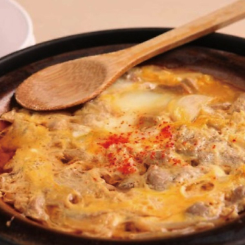 脂ののったマグロのハラモと玉葱を卵でフワリととじました。