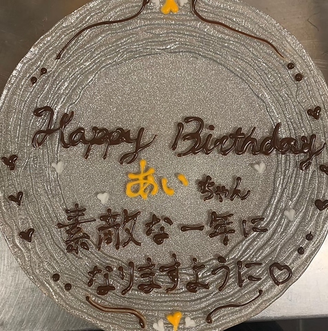 お誕生日や歓迎会、送別会など、心に残るひとときに。ご希望に応じて、メッセージ入りのプレートをご用意◎