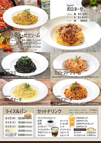 豊富な種類のパスタは和風やクリーム・トマトベース等と選ぶのに迷ってしまいます♪サイズも3種類でご用意♪いろいろな味を楽しみたい方はハーフサイズを2種類注文するのも◎メイン料理のお供にもGOOD!レギュラーサイズじゃものたりない方、みんなでシェアする場合はラージサイズもございます!