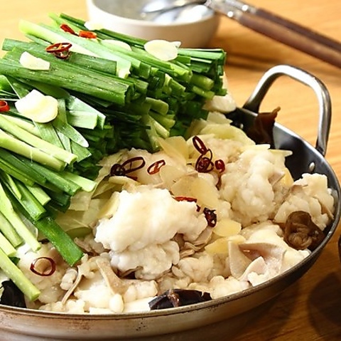 とんこつ味か醤油味を選べます。 ホルモン七種使用。 部位豊富な美味しいもつ鍋をどうぞ♪