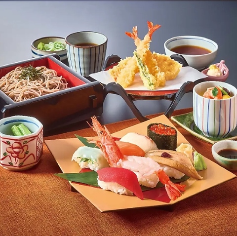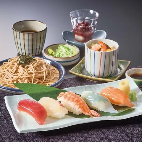 ≪鴨≫鴨汁ざるそば(二段)と寿司セット