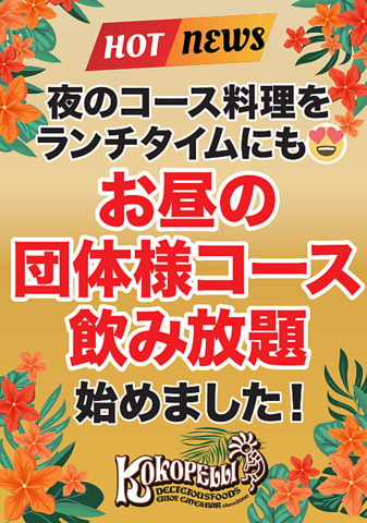 夜のコース料理をランチタイムにも♪お昼の団体様コース飲み放題始めました!※お電話にてご相談下さい。