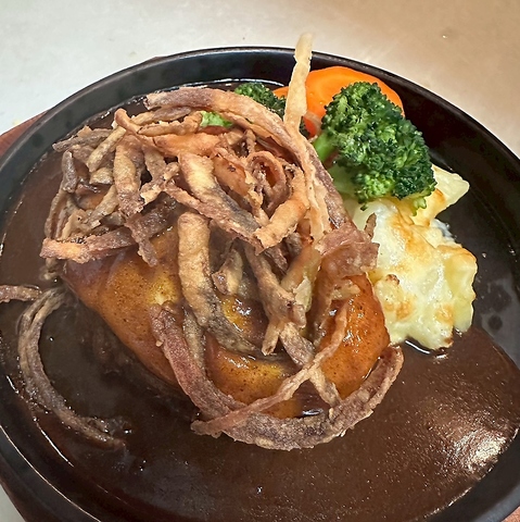 トッピングはチーズとフライドオニオン。ソースはデミグラスソース。