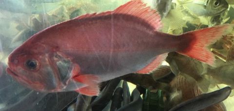 うしおでは三河湾でとれた魚をいけすに入れ、オーダー時に出して捌きます。なので新鮮さは抜群!直近まで生きていた魚なので、お刺身で食べるときはまだちょっと動いてるかも。新鮮さを楽しみながら味わい下さい。写真は”ハシキンメ”脂がのってる時の刺身は最高です!