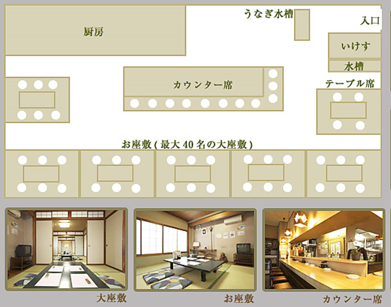 | 座敷 | あり :仕切りでしきれるお座敷席は小宴会や大宴会に。 |