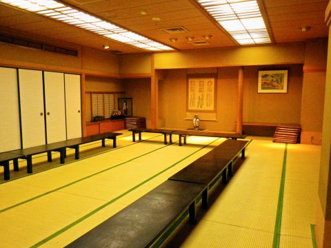2階にある86帖の大広間は清潔感あふれる広々としいる。イス席にもできるので、足の悪い人でも快適だ。