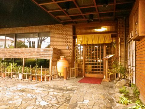和の趣きを大切にし、石畳を基調とした落ち着いた雰囲気のエントランス。緑溢れる木々や和小物の飾りが美しい。