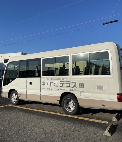 無料の送迎バスをご用意できます。ご予約時にお申し付けください。10名様よりご相談承ります。