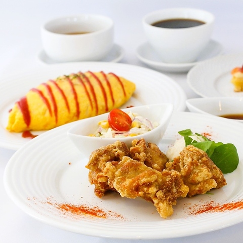 【オムライスランチ1300円(税込み1430円)】オムライス、唐揚げ、スープ、ドリンク付
